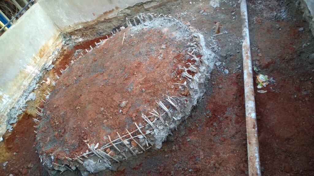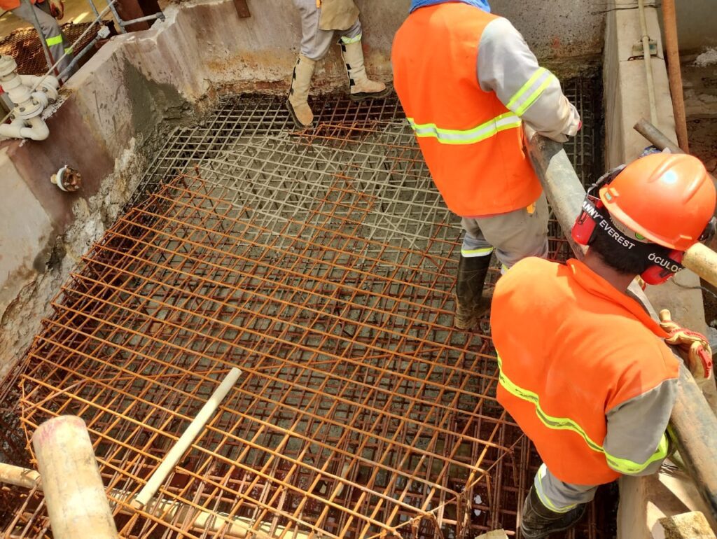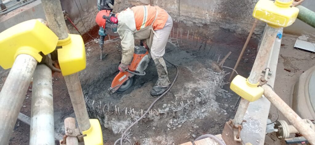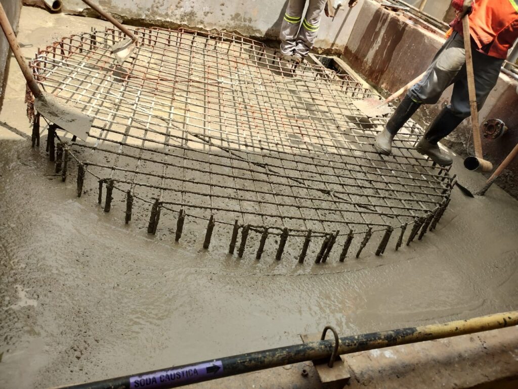 Os comprometimentos observados, ocorreram devido aos derramamentos de ácido sobre a estrutura desprotegida por um sistema impermeabilizante. Desenvolvemos projetos estruturais, para o sistema impermeabilizante e para as tubulações de drenagem. Nestes trabalhos, realizamos demolições integrais, bem como a remoção dos solos contaminados, providenciando o descarte adequado. É importante destacar a grande atenção dada à segurança do trabalho, assegurando que profissionais habilitados executassem essas tarefas com o uso de EPIs adequados.