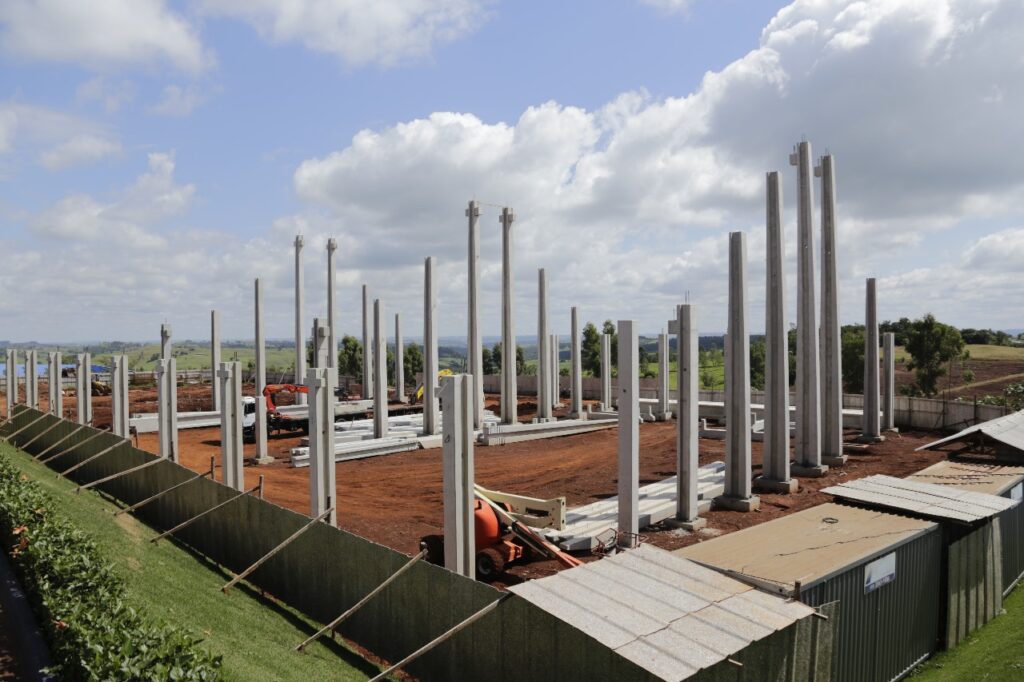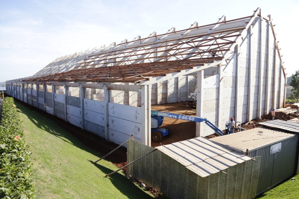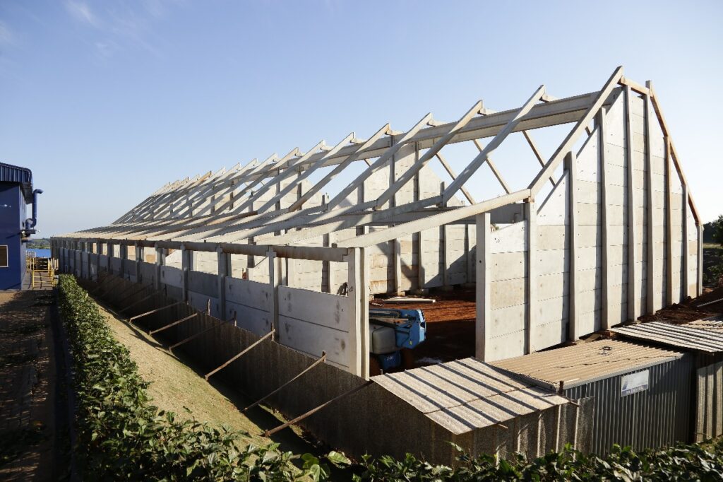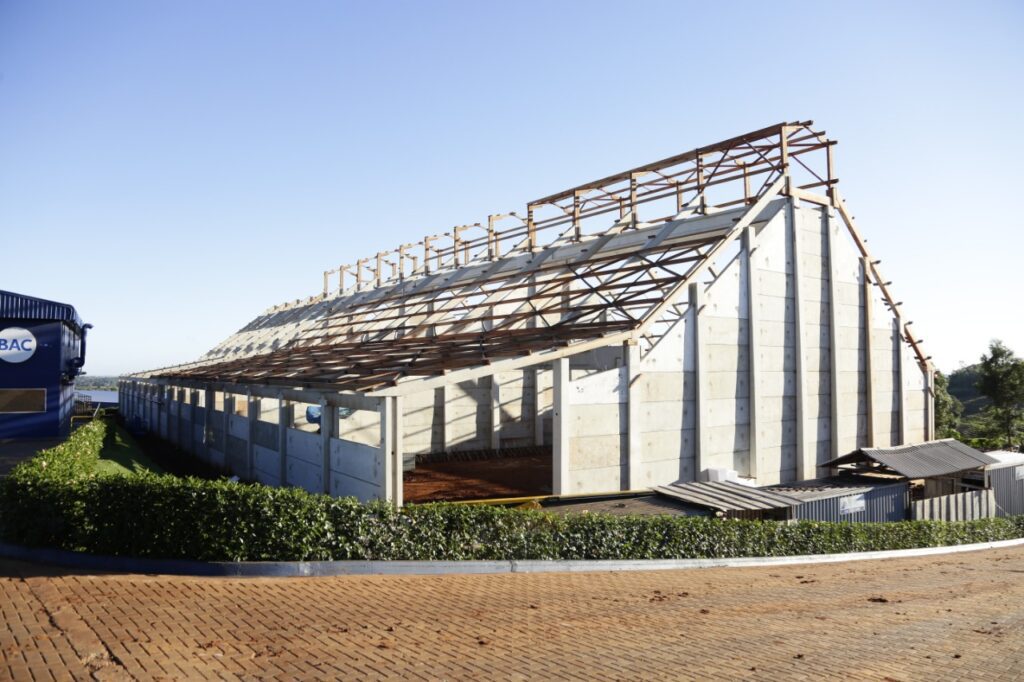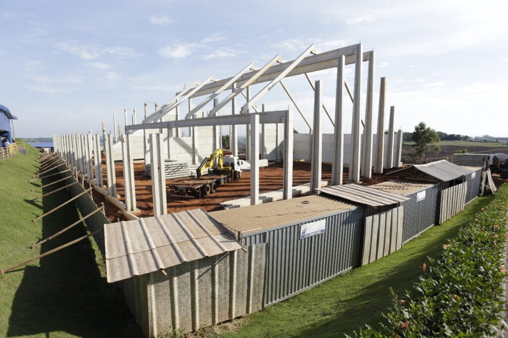 Nesta obra, utilizamos superestruturas em pré-moldados de concreto armado, combinadas com estruturas de madeira para as coberturas.