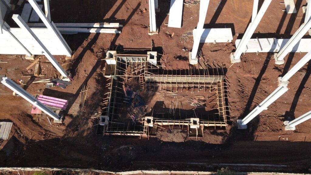 Na sequência, iniciamos os trabalhos de impermeabilização, destacando a especificação de mantas PEAD, cuja resistência mecânica e proteção contra agressividades químicas do ambiente foram determinantes na escolha. Após a aplicação das mantas, realizamos a construção das paredes e do piso em concreto armado, definindo as estruturas e os acabamentos internos. Finalizando, construímos as vigas para o tombador.