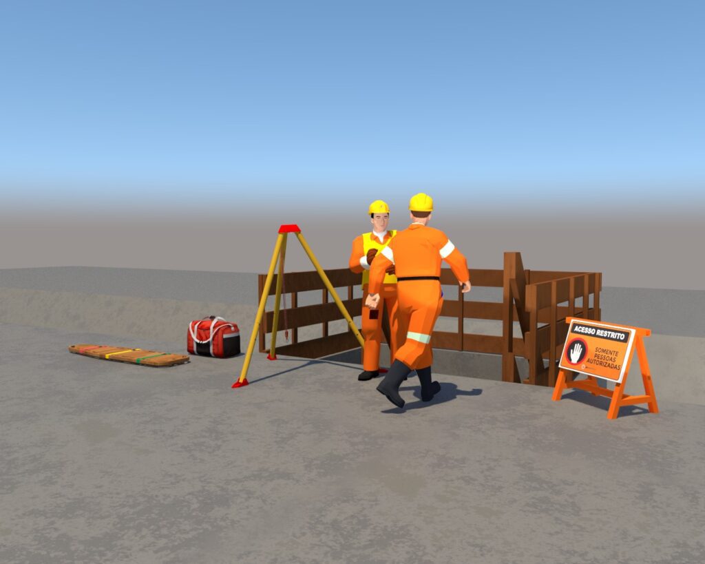 No atendimento aos trabalhos em espaço confinado, equipamentos e acessórios de resgate, kit de primeiros socorros, imobilizador lateral de cabeça, tala de resgate, colar cervical e ambu reanimador. Em se tratando da equipe técnica e executiva, todos com treinamentos exigidos para as condições de espaço confinado.