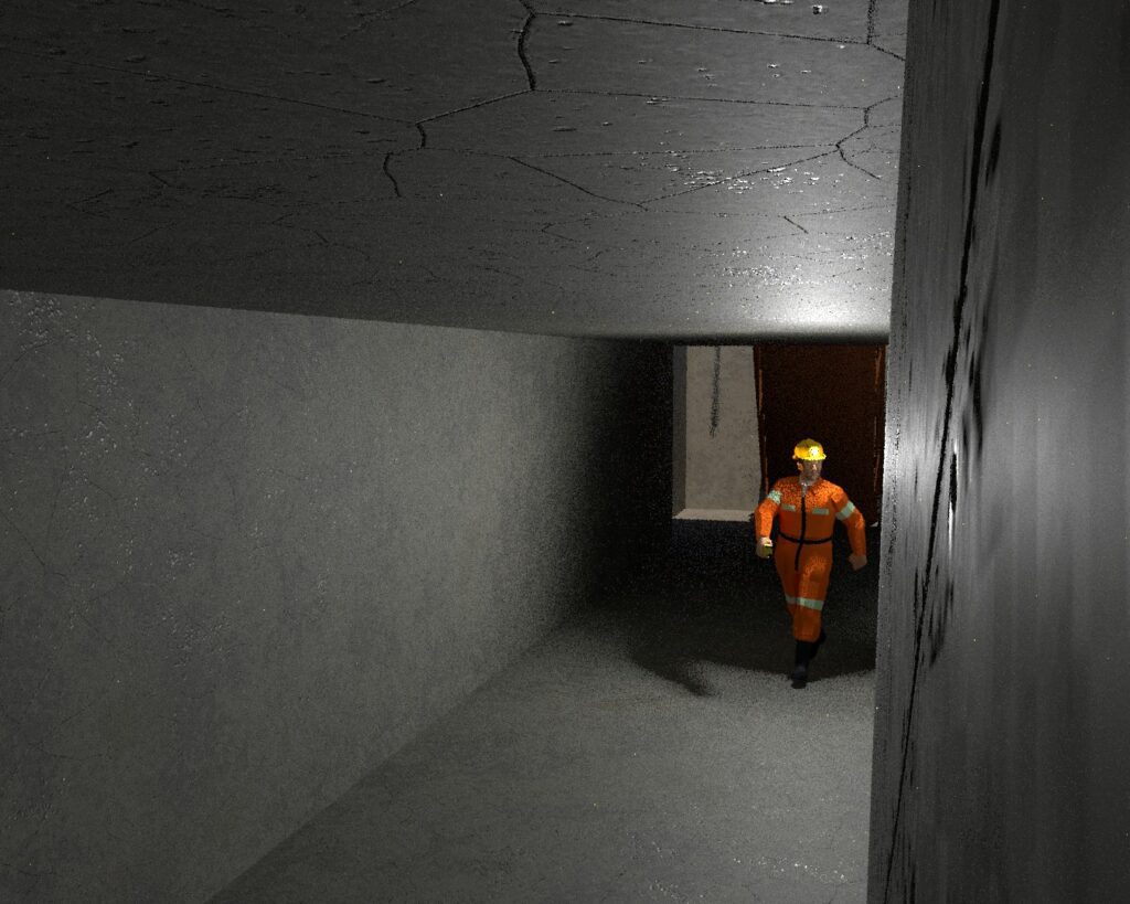 Nas execuções propriamente ditas, realização inicial de medição dos gases dentro da galeria.