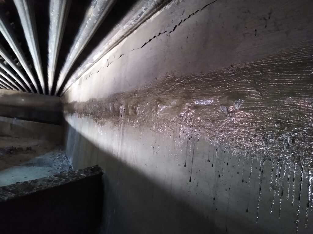 Finalizado o hidrojato, partimos para a realização das injeções. Nesses trabalhos, buscamos o tamponamento das fissuras existentes, seguindo as definições dadas no memorial descritivo.