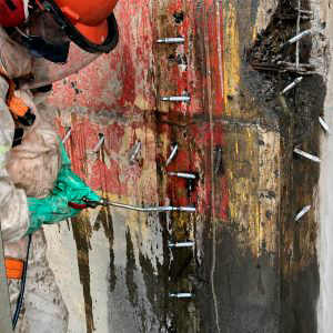 Realizamos as injeções com as resinas hidro reagentes, produzindo o tamponamento.