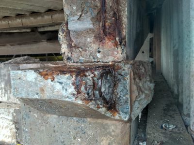 Nestas estruturas, encontramos berços em concreto com integridade totalmente comprometida, tendo originalmente a responsabilidade de suportar terças em concreto.