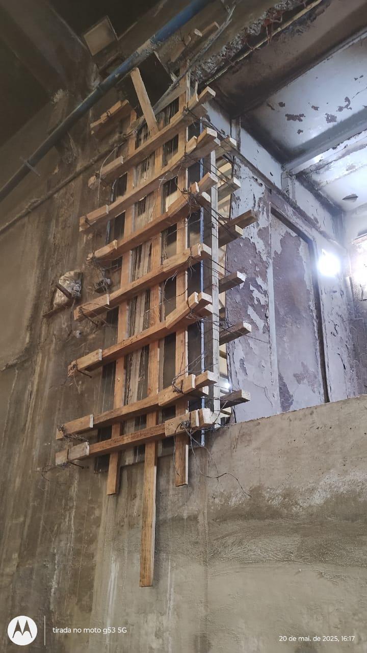 ► Recuperações, combinadas com reforço estrutural e eliminação de misulas, em parede divisoria de concreto armado